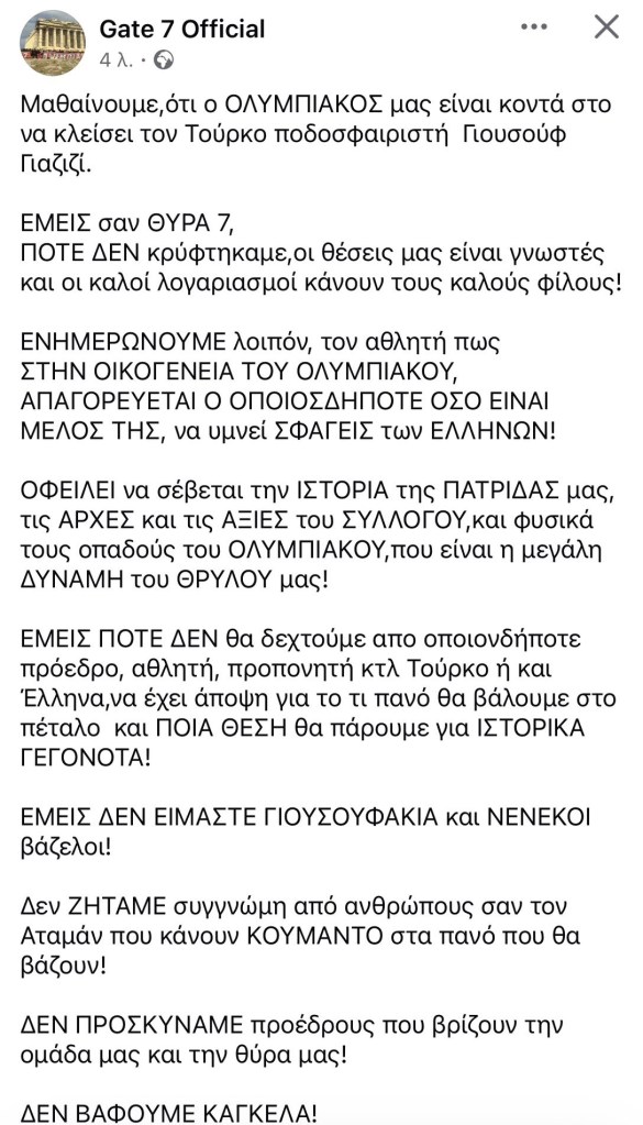 Εν τω μεταξύ, αντιδράσεις σημειώθηκαν από τη Θύρα 7, η οποία εξέδωσε την παρακάτω ανακοίνωση: