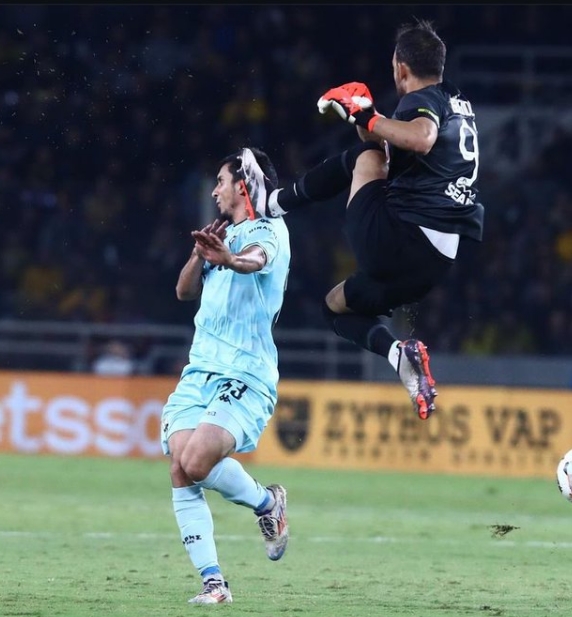 Τις έντονες διαμαρτυρίες του Ματίας Αλμέιδα δέχθηκε στο τέλος του πρώτου ημιχρόνου ο Βασίλης Φωτιάς. Ο οποίος έδειξε κόκκινη κάρτα στα τελευταία λεπτά σε έναν από τους βοηθούς του Αλμέιδα.