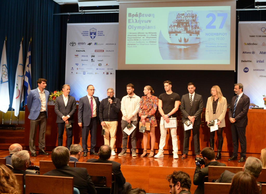 Σε μια εμβληματική και συνάμα συγκινητική εκδήλωση, που πραγματοποιήθηκε στο Αμφιθέατρο της Ελληνικής Ολυμπιακής Επιτροπής παρουσία της κ. Σπύρου Καπράλου OLY, του Γενικού Γραμματέα Αθλητισμού κ. Γιώργου Μαυρωτά OLY, εκπροσώπων του Κυπριακού Αθλητισμού, εκπροσώπων της Ελληνικής Παραολυμπιακής Επιτροπής και πλήθους μελών της Ολυμπιακής οικογένειας, η Ένωση Συμμετασχόντων σε Ολυμπιακούς Αγώνες ΕΣΟΑ και η Επιτροπή Αθλητών της ΕΟΕ υποδέχτηκαν και βράβευσαν όλους τους Olympians που συμμετείχαν στους Ολυμπιακούς Αγώνες του «Παρίσι 2024» καθώς και τους προπονητές τους.